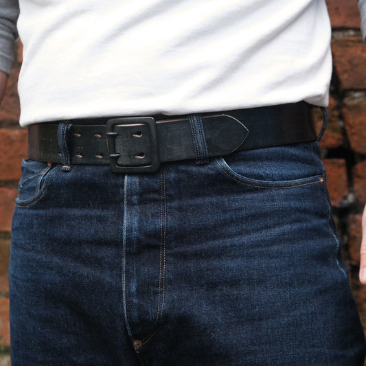 Hollows Leather - Black Buckle Double Prong Rail Belt - Black Bridle Leather