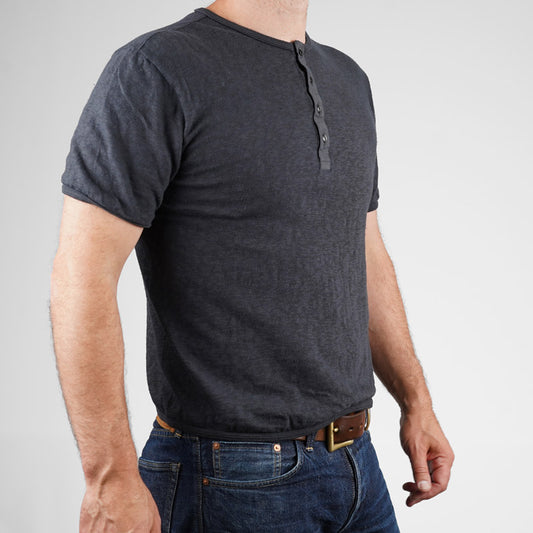 Loop & Weft SLUB 4 Button Henley - Antique Black LRH1037
