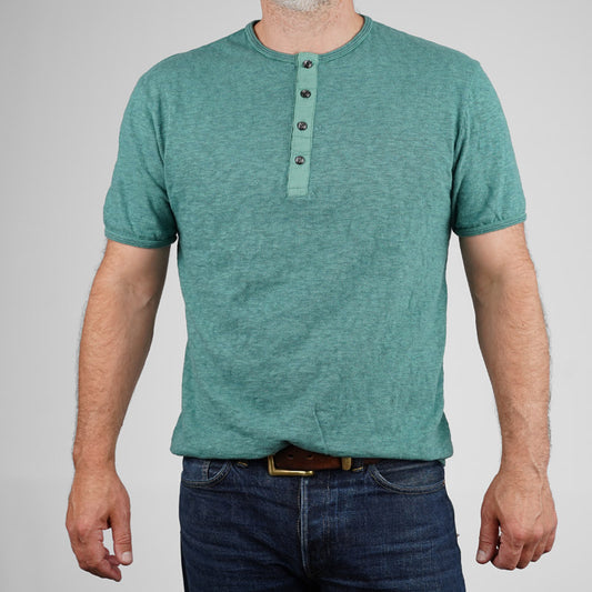 Loop & Weft SLUB 4 Button Henley - Ocean Green LRH1037