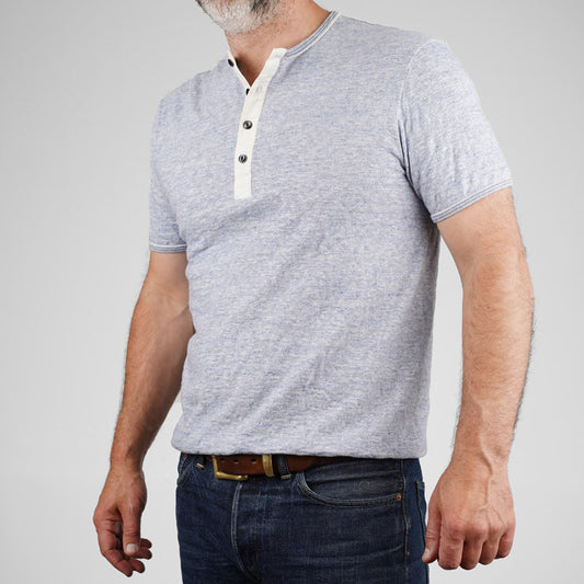 Loop & Weft SLUB 4 Button Henley - Heather Blue LRH1037