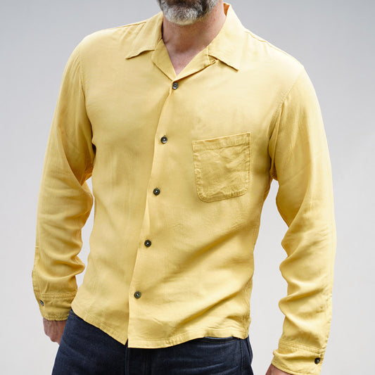 ACVM LS Slant Pocket Rayon Open Collar Shirt - Yellow