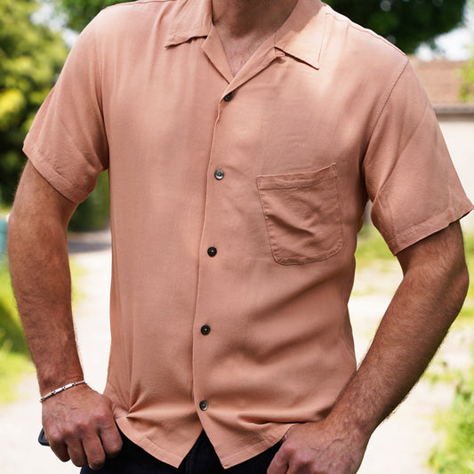 ACVM SS Slant Pocket Rayon Open Collar Shirt - Pink