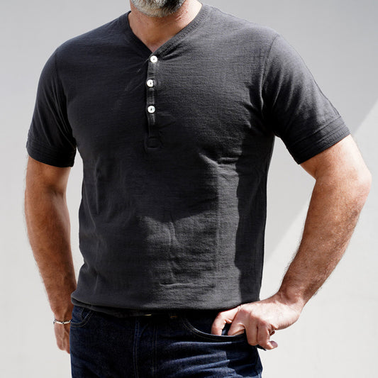 Loop & Weft TUCK STITCH RIBBED MILITARY HENLEY - Black