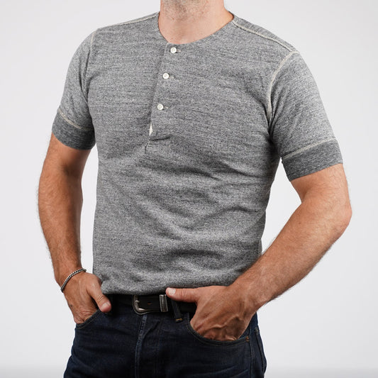 Stevenson Overall Loop-wheeled Short Sleeve Henley - Heather Grey