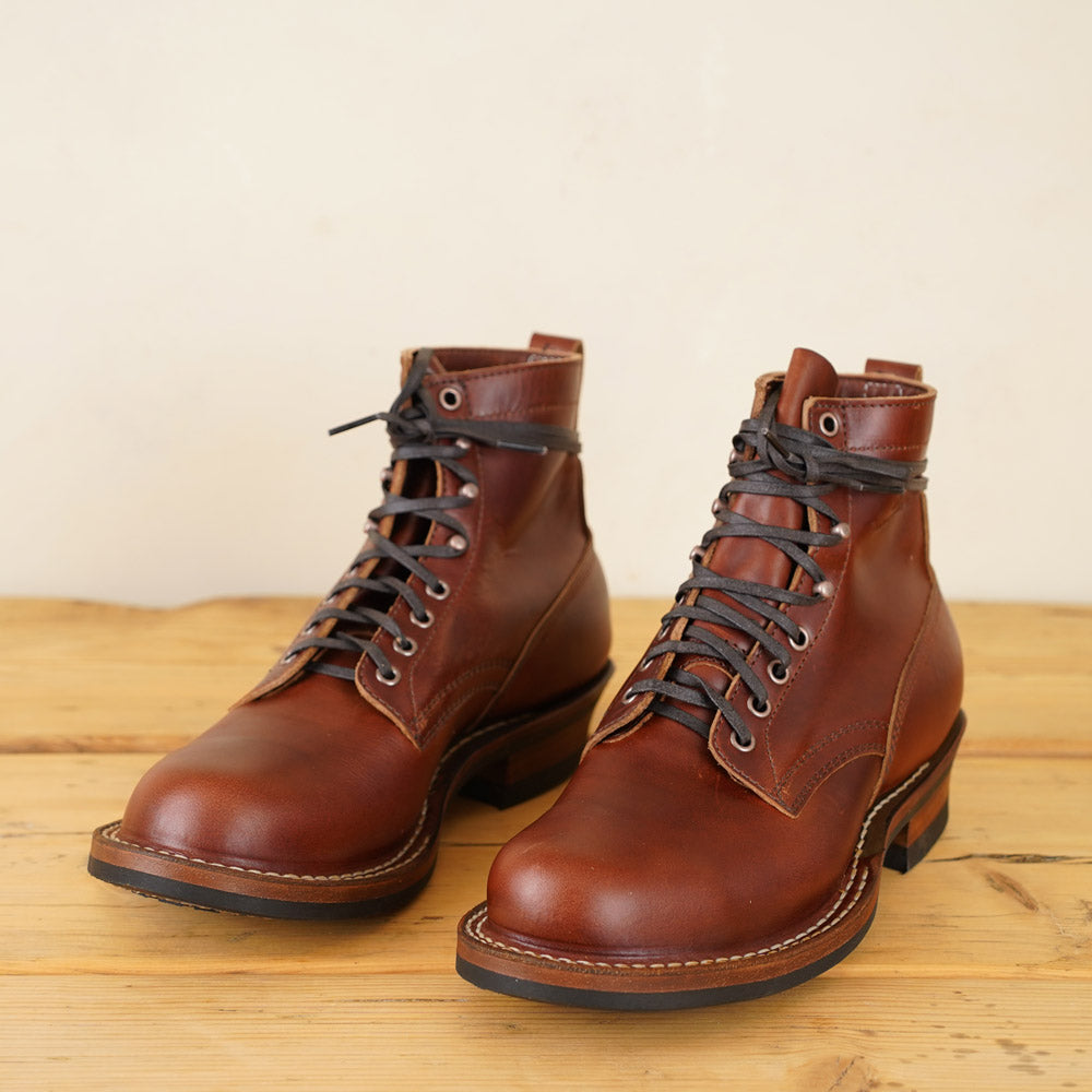 Known to many as the Farmer Rancher/ Bounty Hunter or Smoke Jumper, the pattern is the same but this classic pair of boots is built on the very popular #55 Semi Dress last and is non lace to toe for a more classic boot style. What’s not to like, the British Tan leather is a very hardy and great ageing Double Shot leather that is supple and very versatile for any wardrobe. A Great, classic pair of boots that will look better the more you wear them.