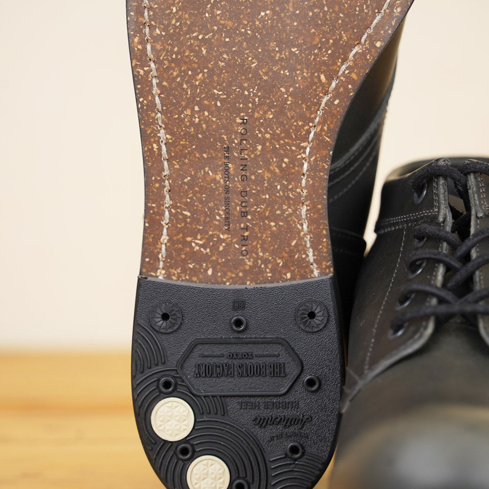 For the finishing touch the outer soles are finished with Rolling Dub Trio branded steel toe taps for extra wear protection.