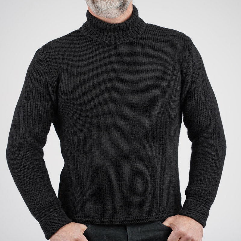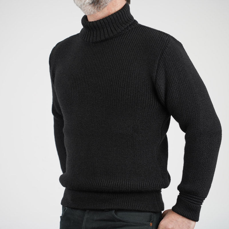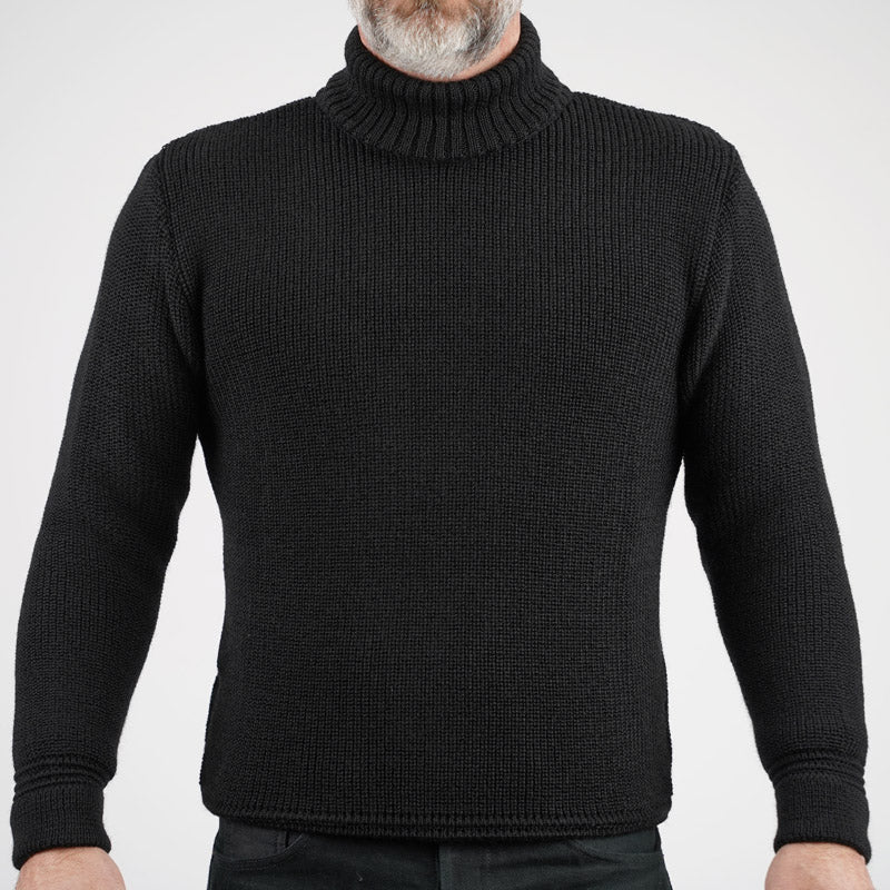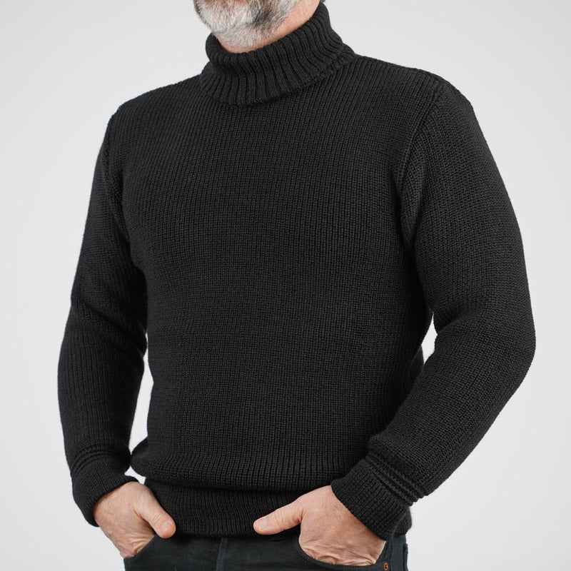 Knitted from a full kilogram of premium virgin wool, this weighty roll neck is our take on the classic submariners jumper, worn above and below the waves during WWII. Not only is the wool heavy, but so is the gauge, it’s a hearty 5-gauge knit that’s designed to keep you warm on even the coldest of days. Made from extra-long fibres, its highly resistant to pilling and will continue to look fantastic even after years of regular wear, and unlike most knitwear producers we leave the natural oils in the wool yarn, meaning our jumpers have self-cleaning and water-resistant properties.