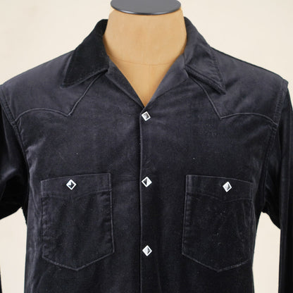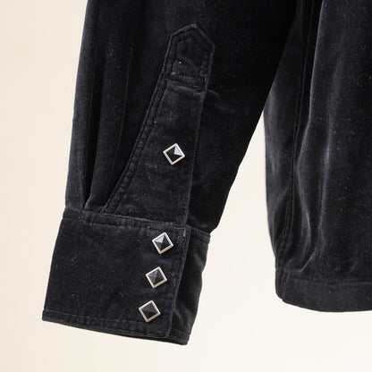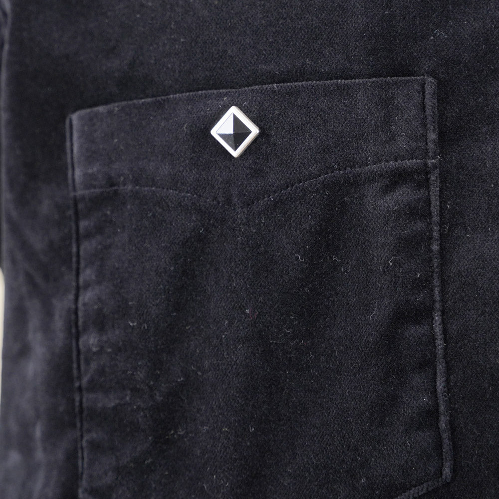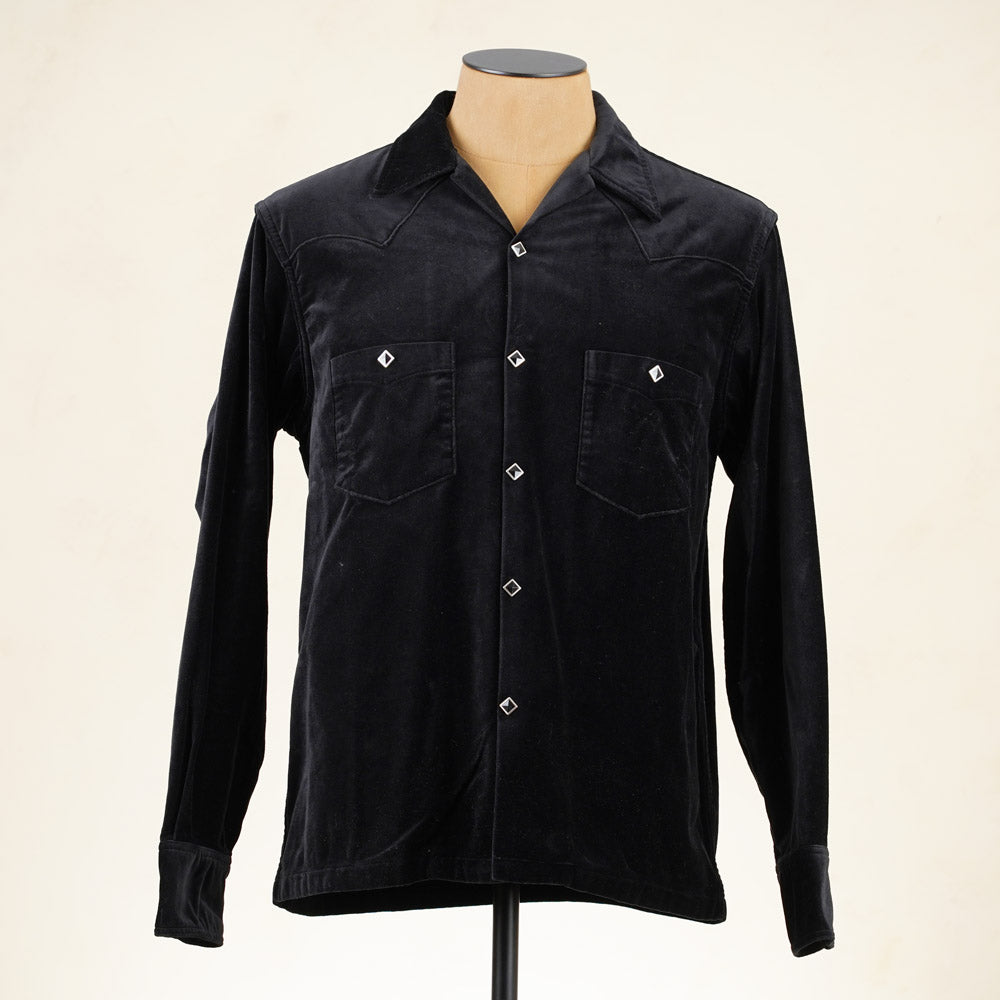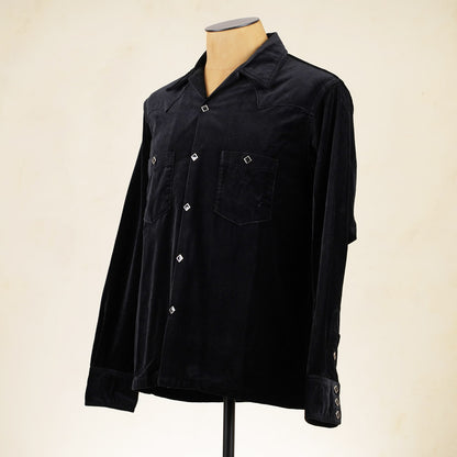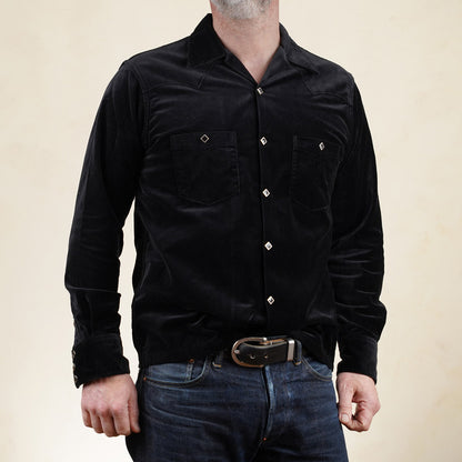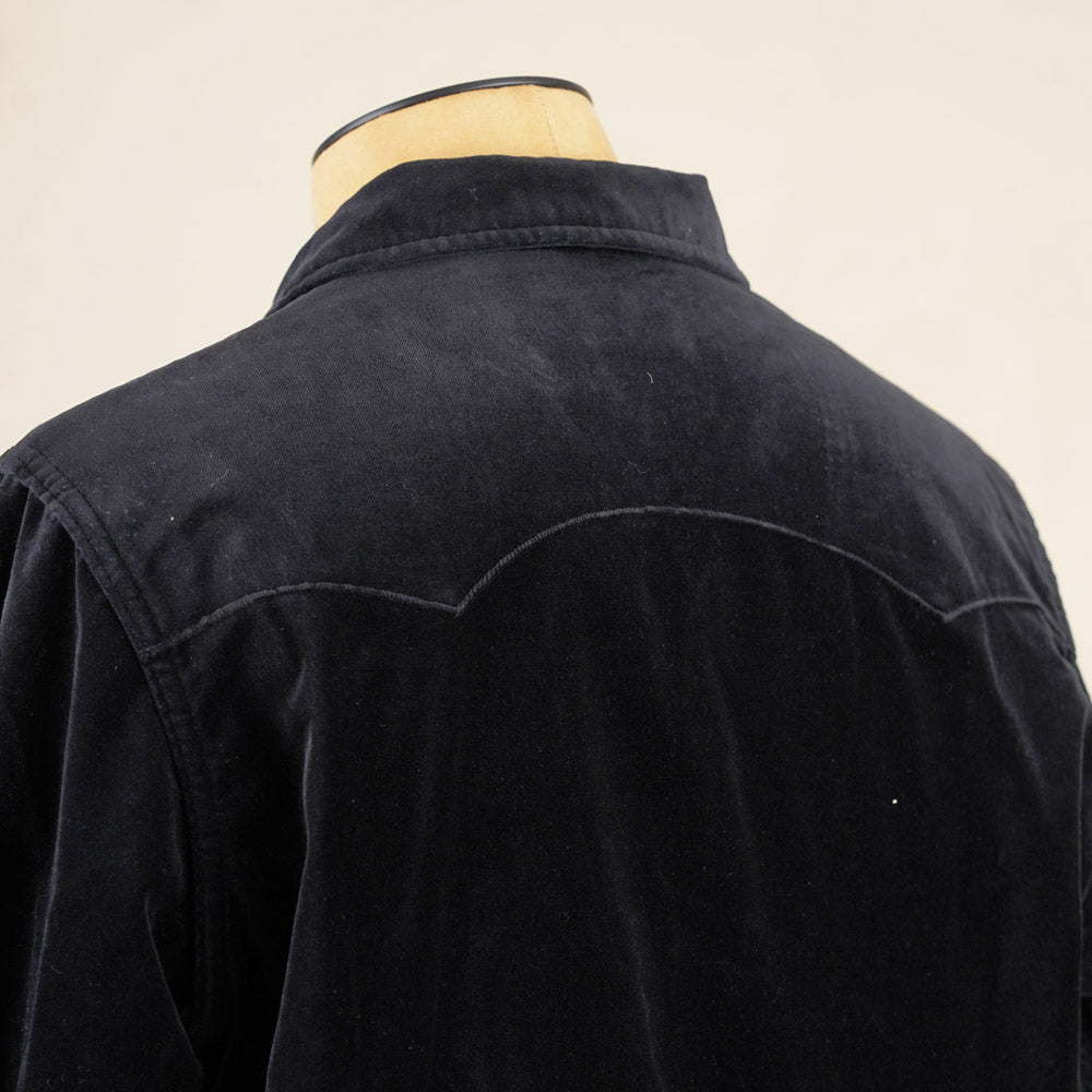 The velveteen cotton fabric is mid weight and has a lovely drape and gives this style an air of class. Combine the fabric with piped outer yoke seams and diamond snaps and you've got a very original styled shirt that can be worn as a lightweight jacket as well.