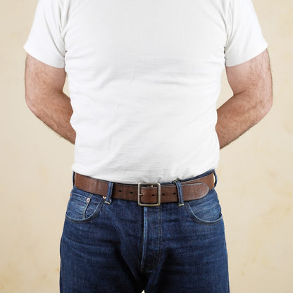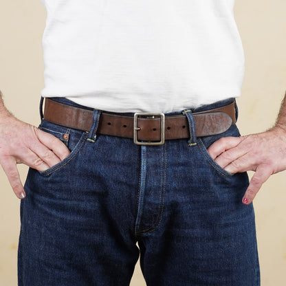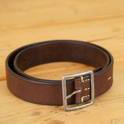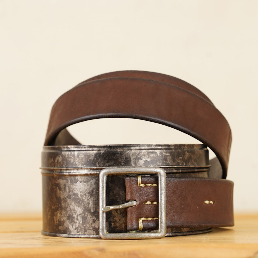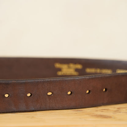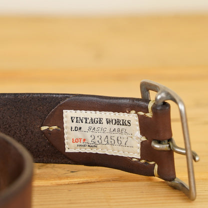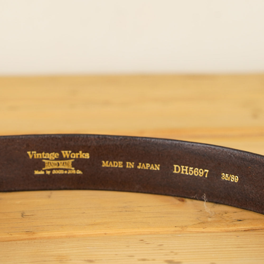 Vintage works belts are great. Very well made, nice details, individually numbered and all are cut, bevelled, dyed and finally hand stitched in a small workshop in Japan that specialise pretty much only in belt making. The stitched in numbered tag (the number you see is the number of your belt) is a very nice personalised touch.
