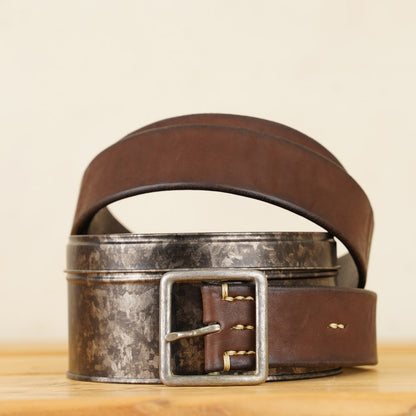 Hollows Leather - Single Prong Rail Belt - Navy Bridle Leather/ Silver Buckle