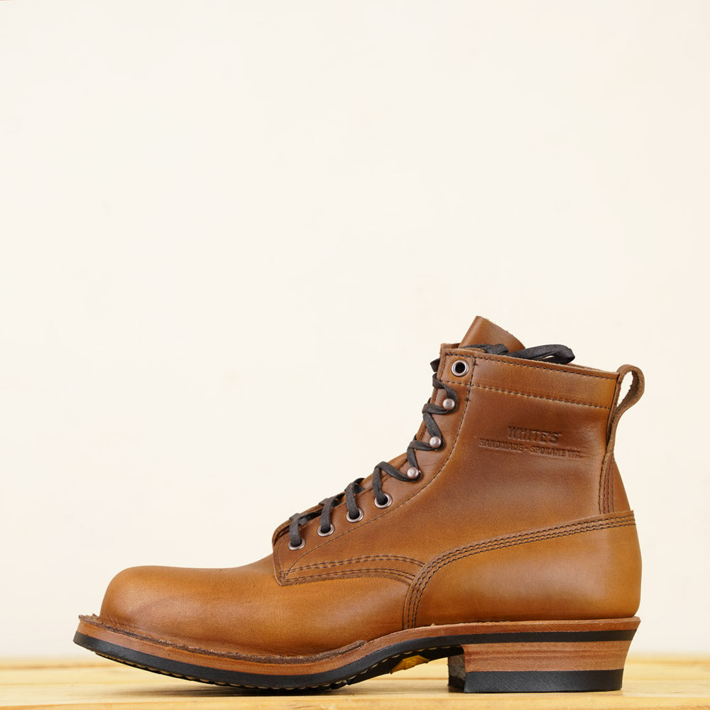 Construction: Every pair of White’s boots are handmade from start to finish. All leather, no synthetic materials or fillers are used. Stitch-down construction for strength, comfort and ability to resole. Stitched throughout with heavy gauge waxed thread. Flexible oak tanned leather mid soles, optional Vibram outer soles, strong all-leather shank custom shaped to fit your foot and the finest leather uppers that will only get better with age all make White’s a real workhorse of a boot.