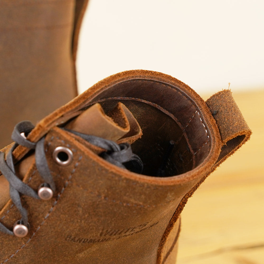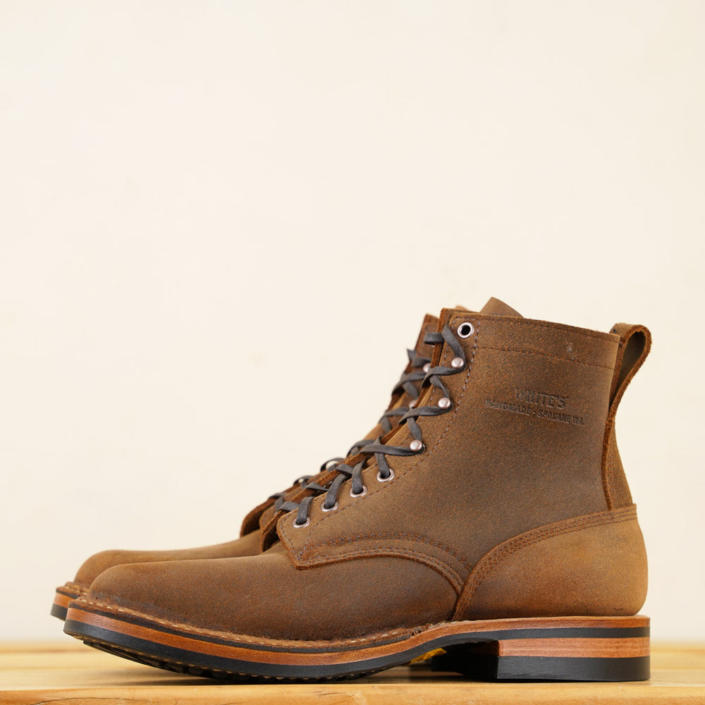 Construction: Every pair of White’s boots are handmade from start to finish. All leather, no synthetic materials or fillers are used. Stitch-down construction for strength, comfort and ability to resole. Stitched throughout with heavy gauge waxed thread. Flexible oak tanned leather mid soles, optional Vibram outer soles, strong all-leather shank custom shaped to fit your foot and the finest leather uppers that will only get better with age all make White’s a real workhorse of a boot.